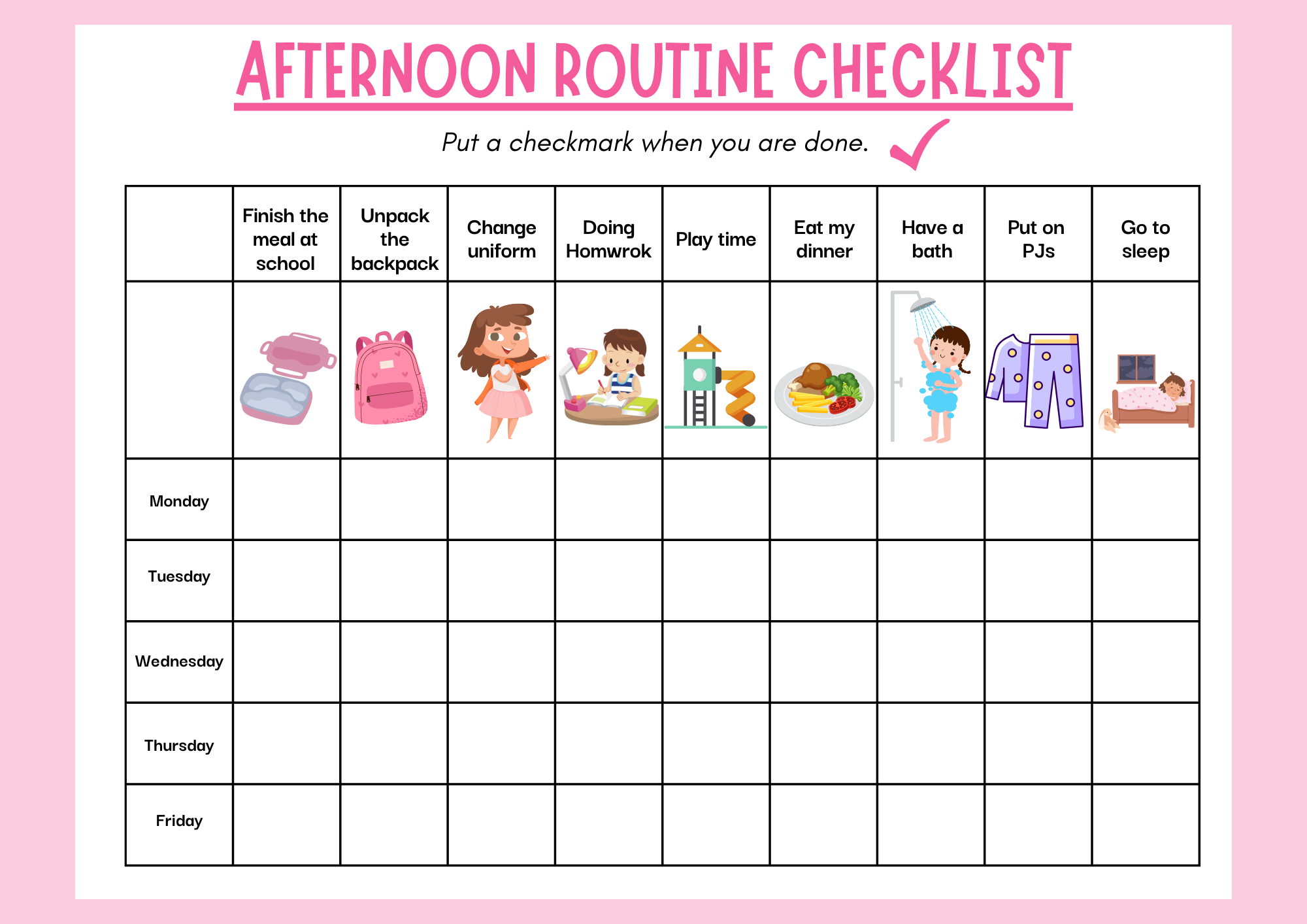 Morning & Afternoon Routine Checklists (For Girls)